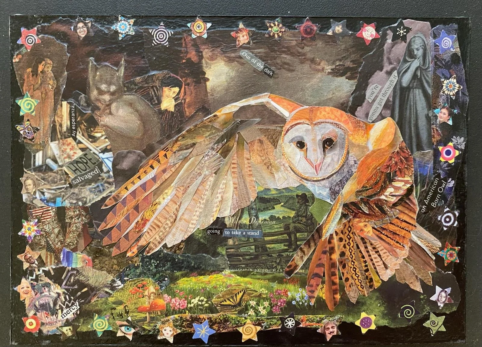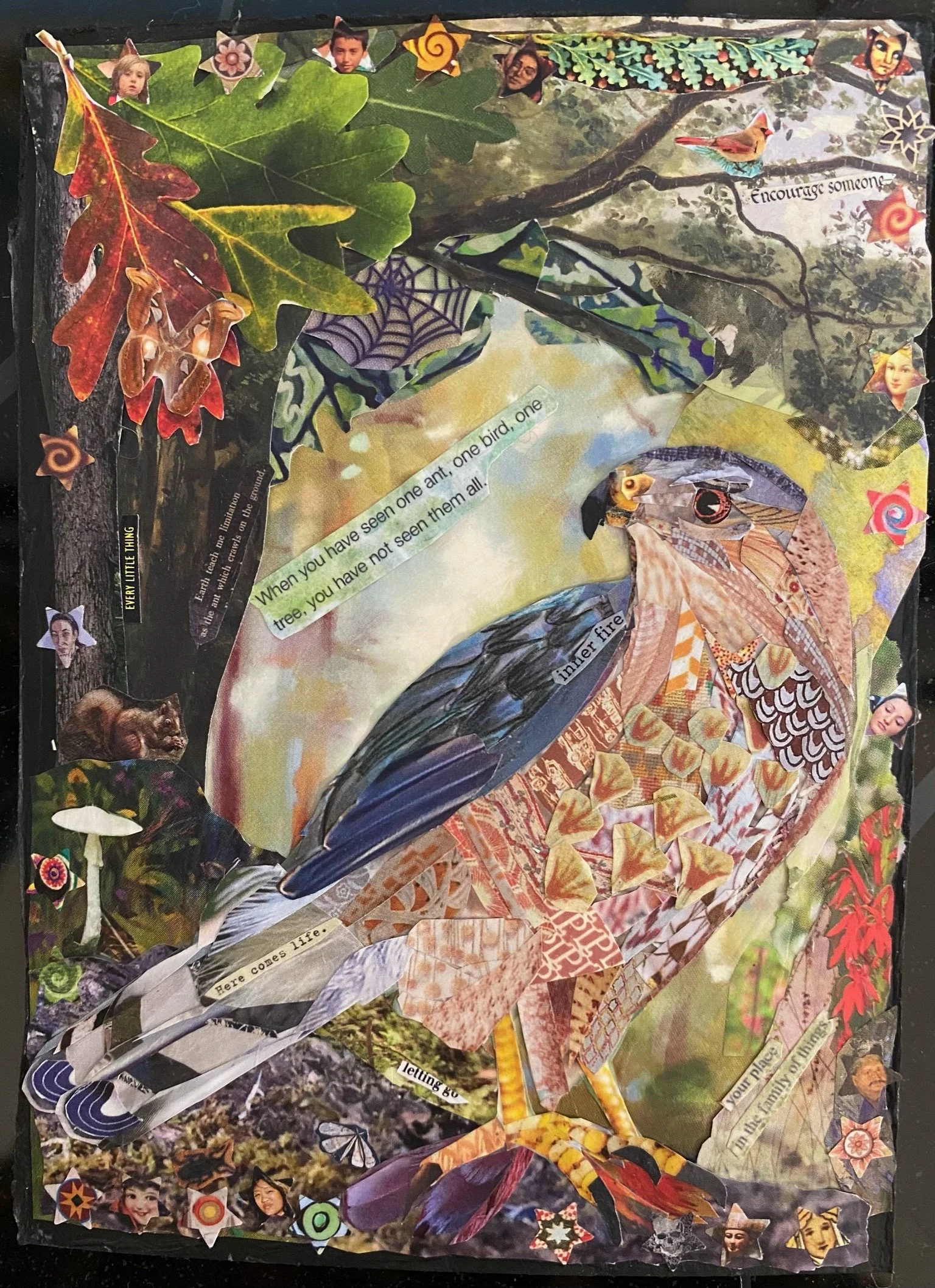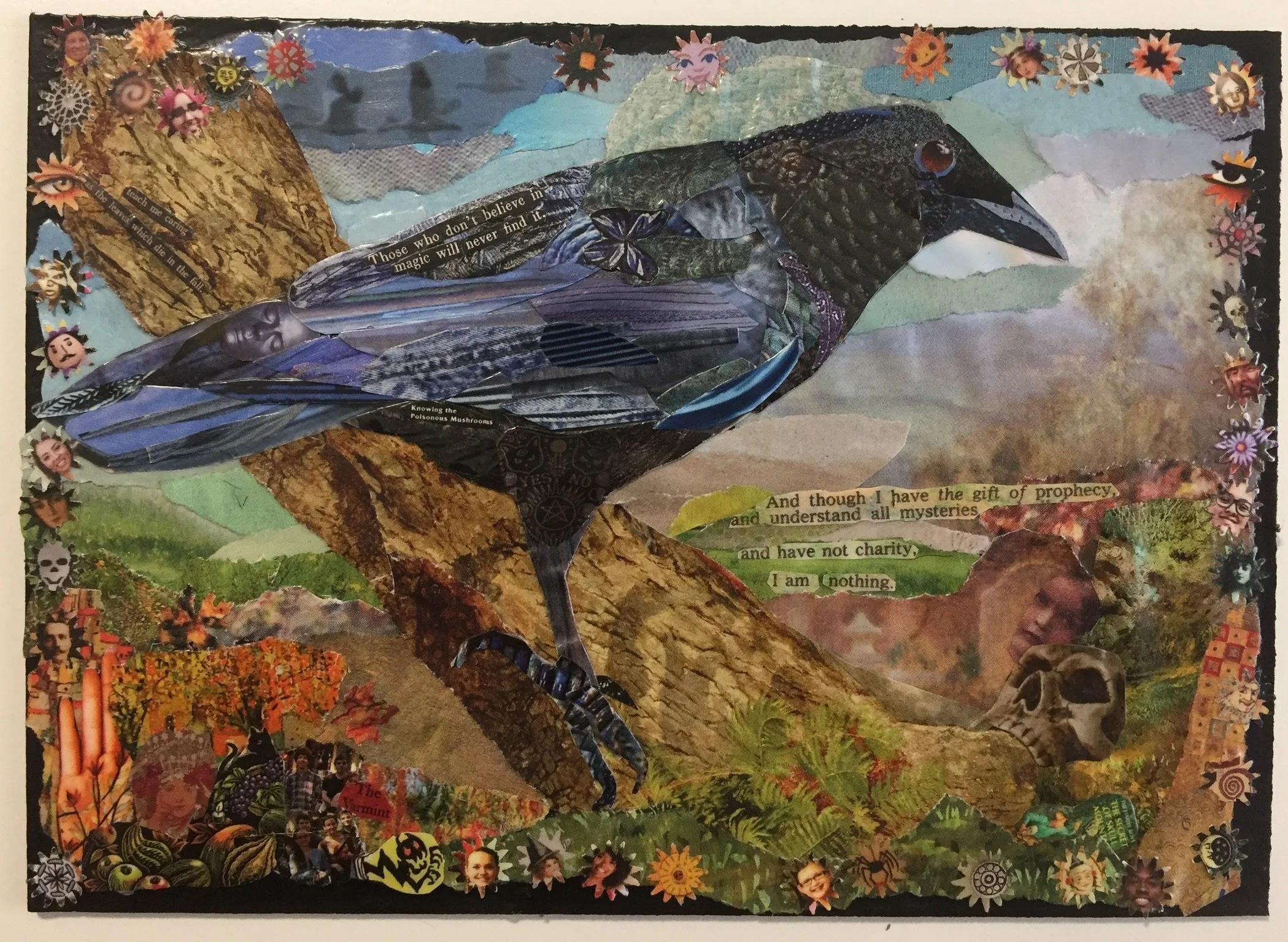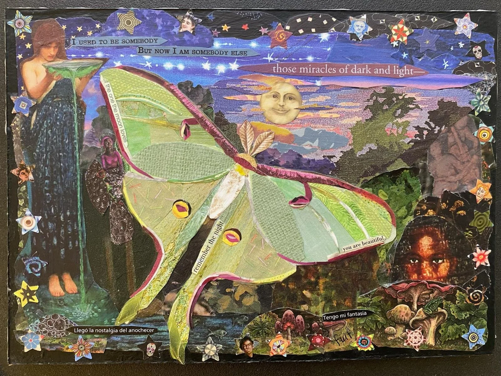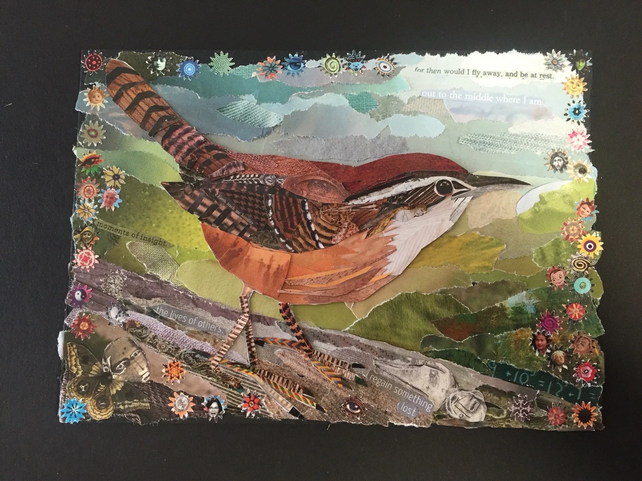 Florrie Funk is a North Carolina based collage artist. Through layers of reclaimed paper, hidden symbols, and poetry written in found words, her pieces invite viewers to look carefully - to discover the quiet narratives nestled in feathers, petals, scales, and shadows.