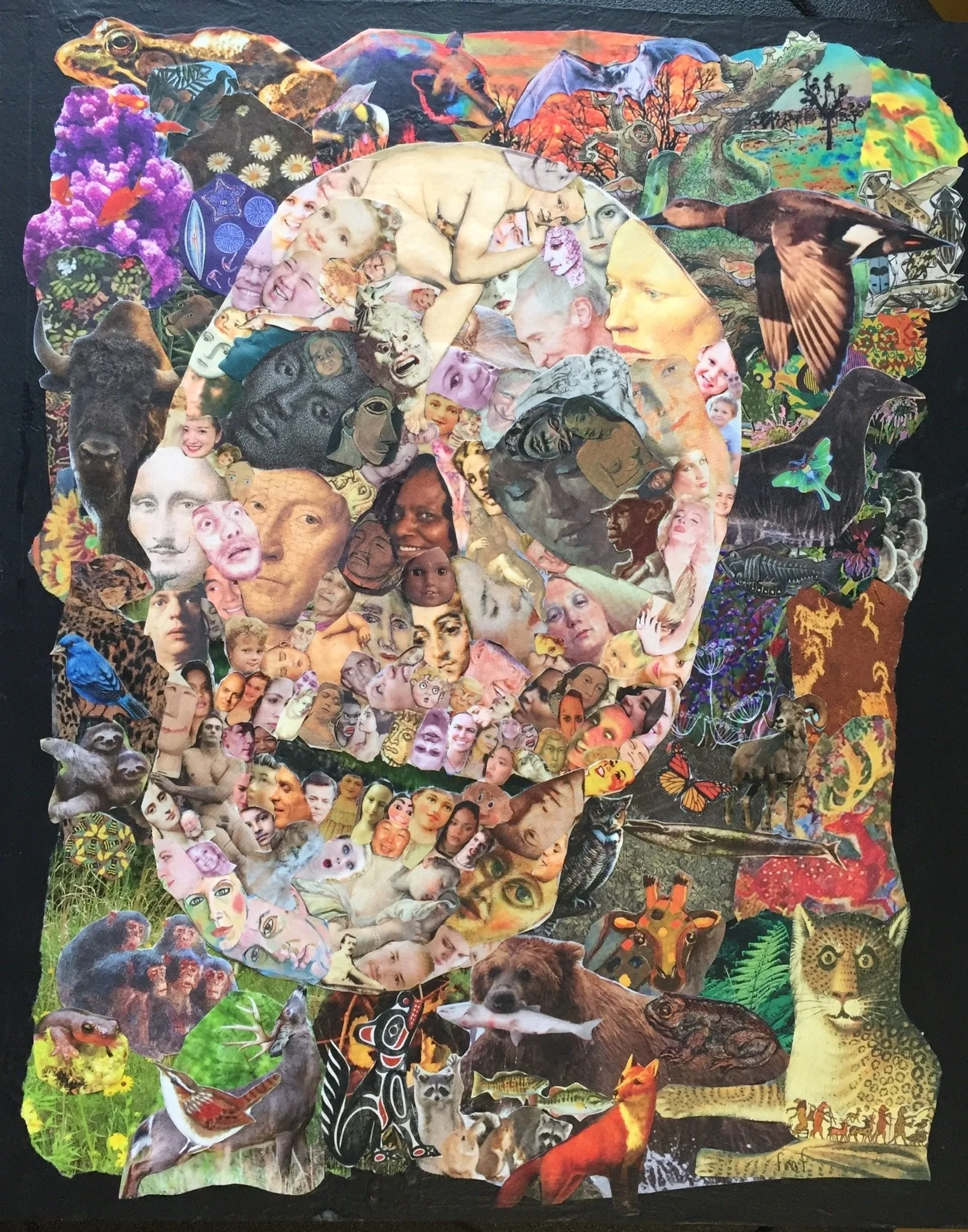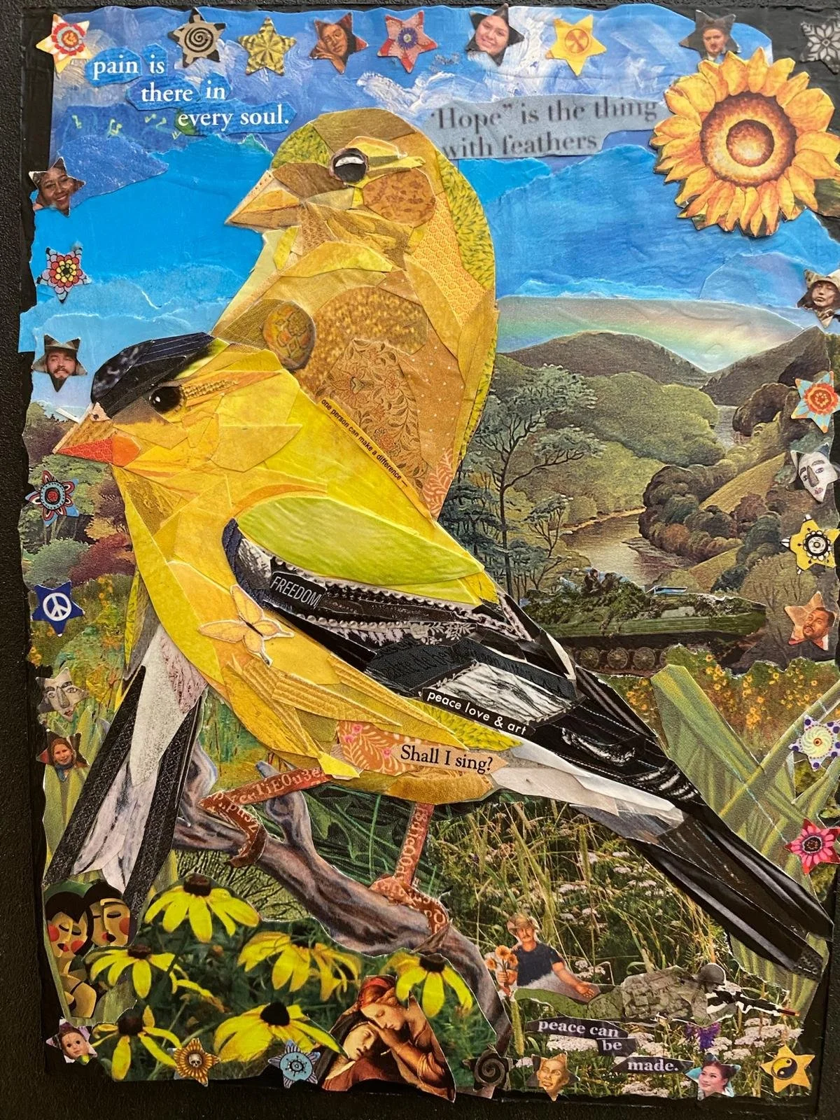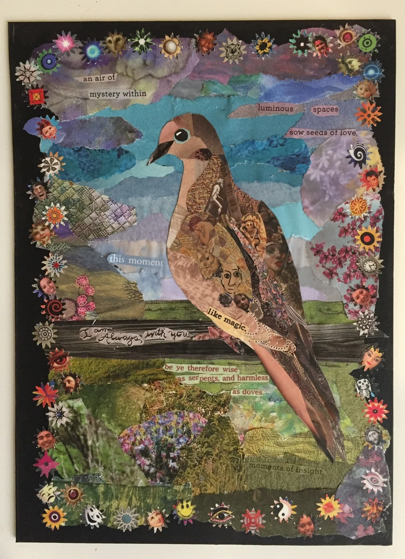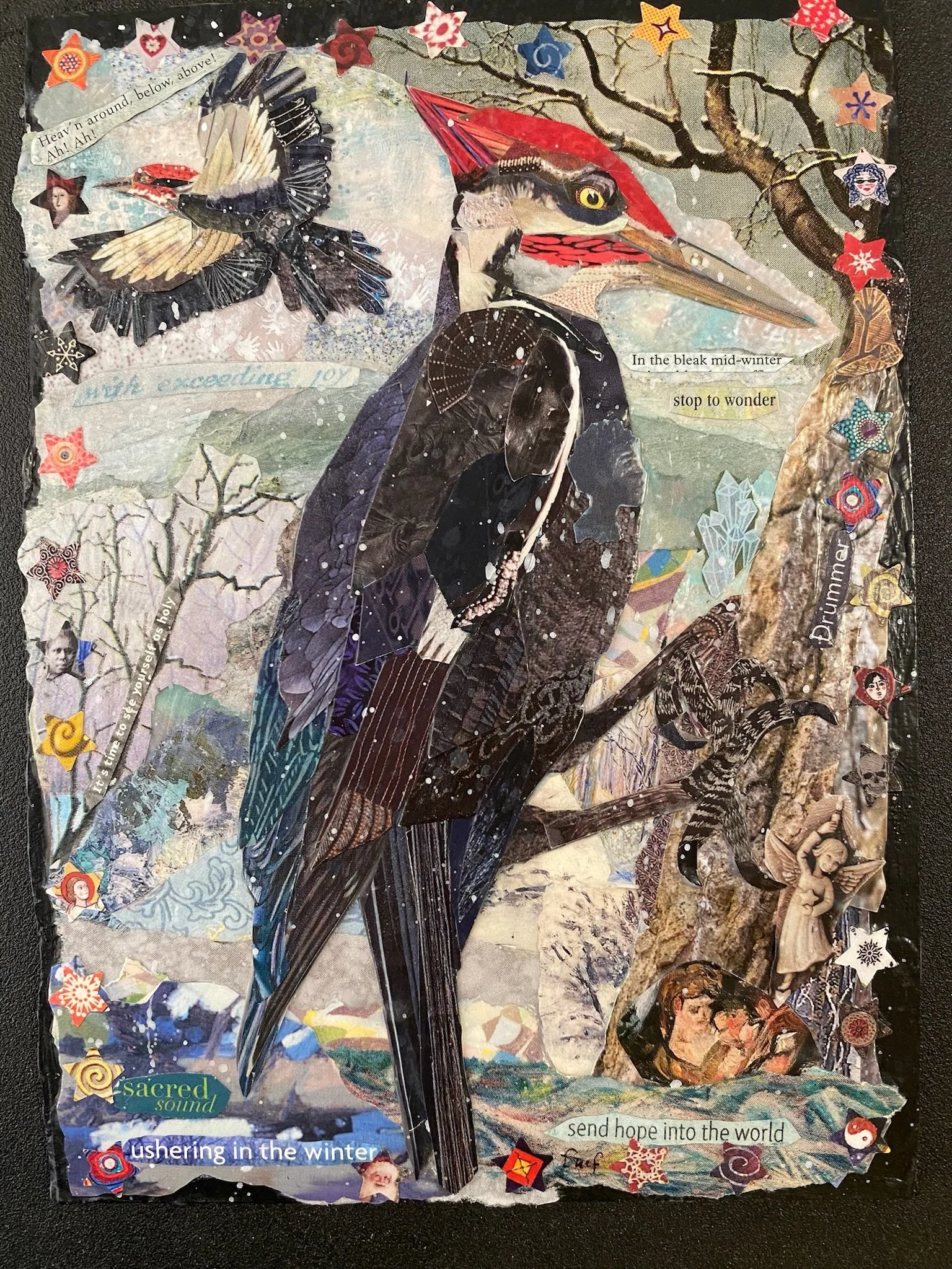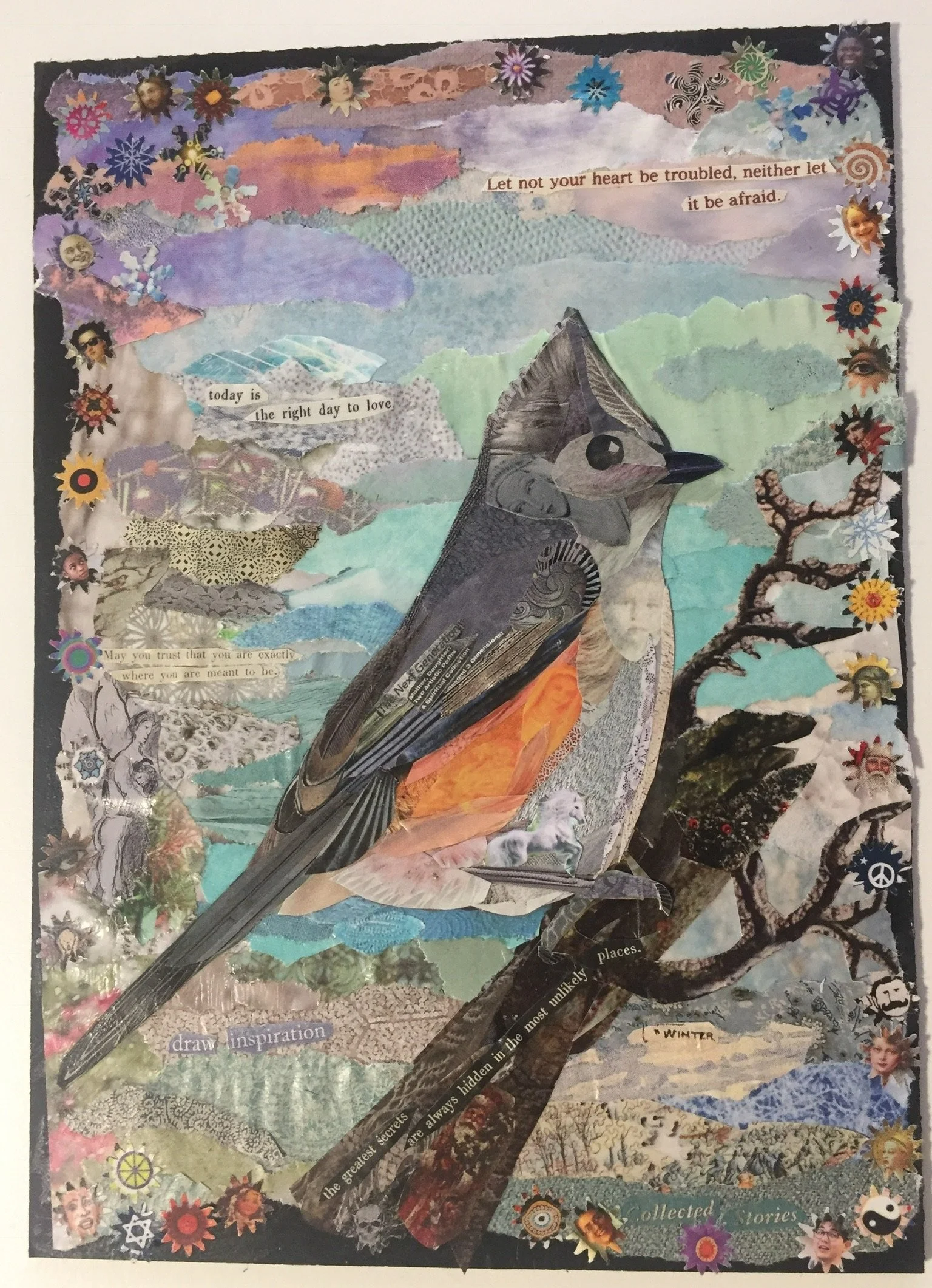 Florrie Funk is a North Carolina based collage artist. Through layers of reclaimed paper, hidden symbols, and poetry written in found words, her pieces invite viewers to look carefully - to discover the quiet narratives nestled in feathers, petals, scales, and shadows.