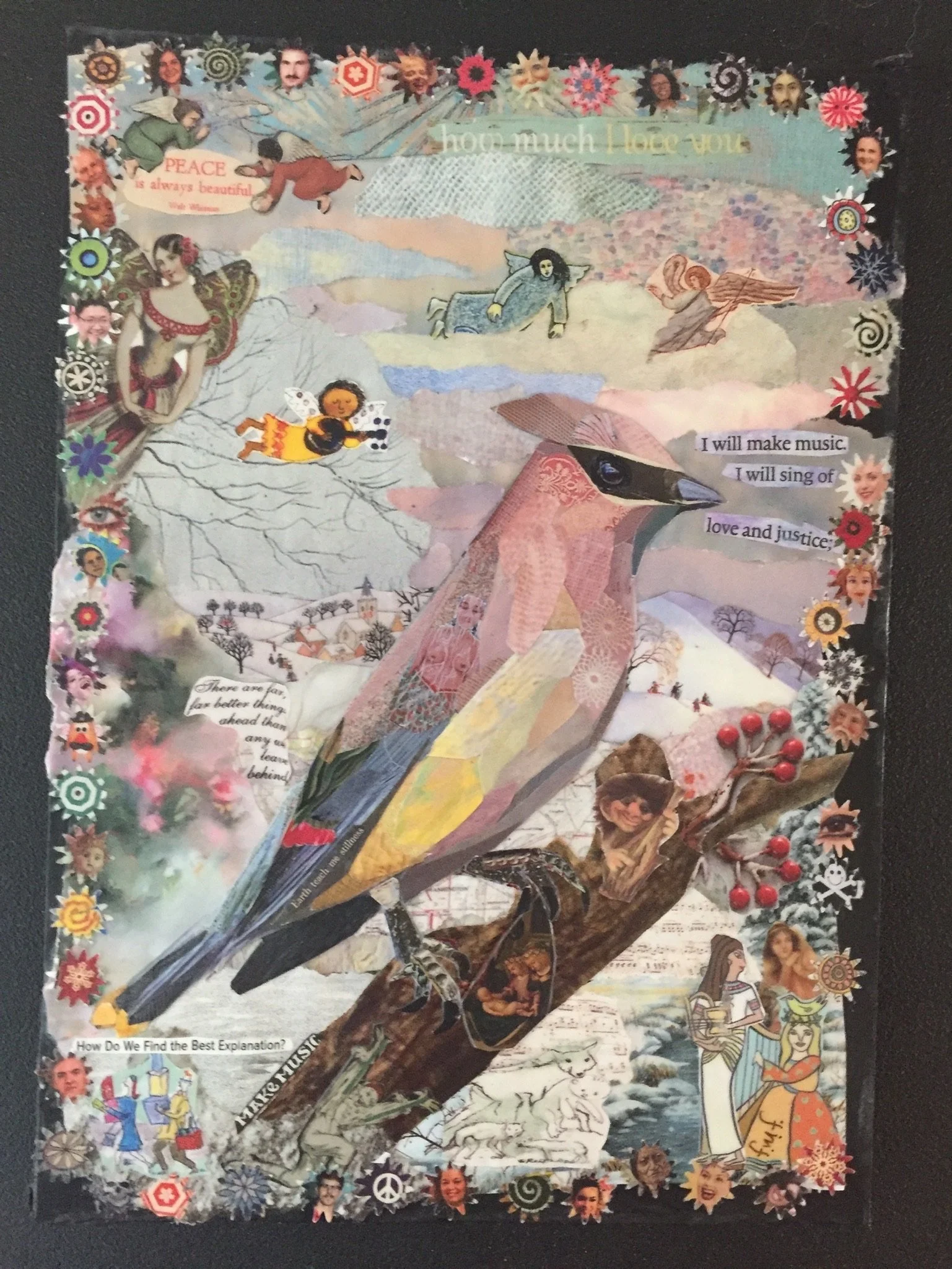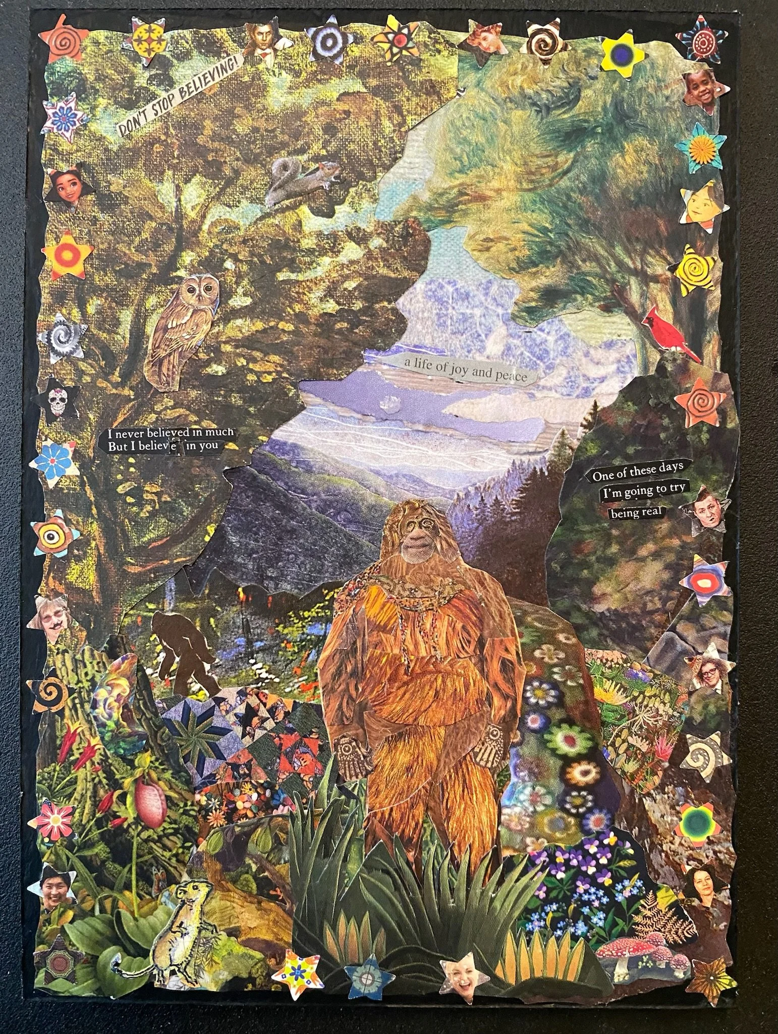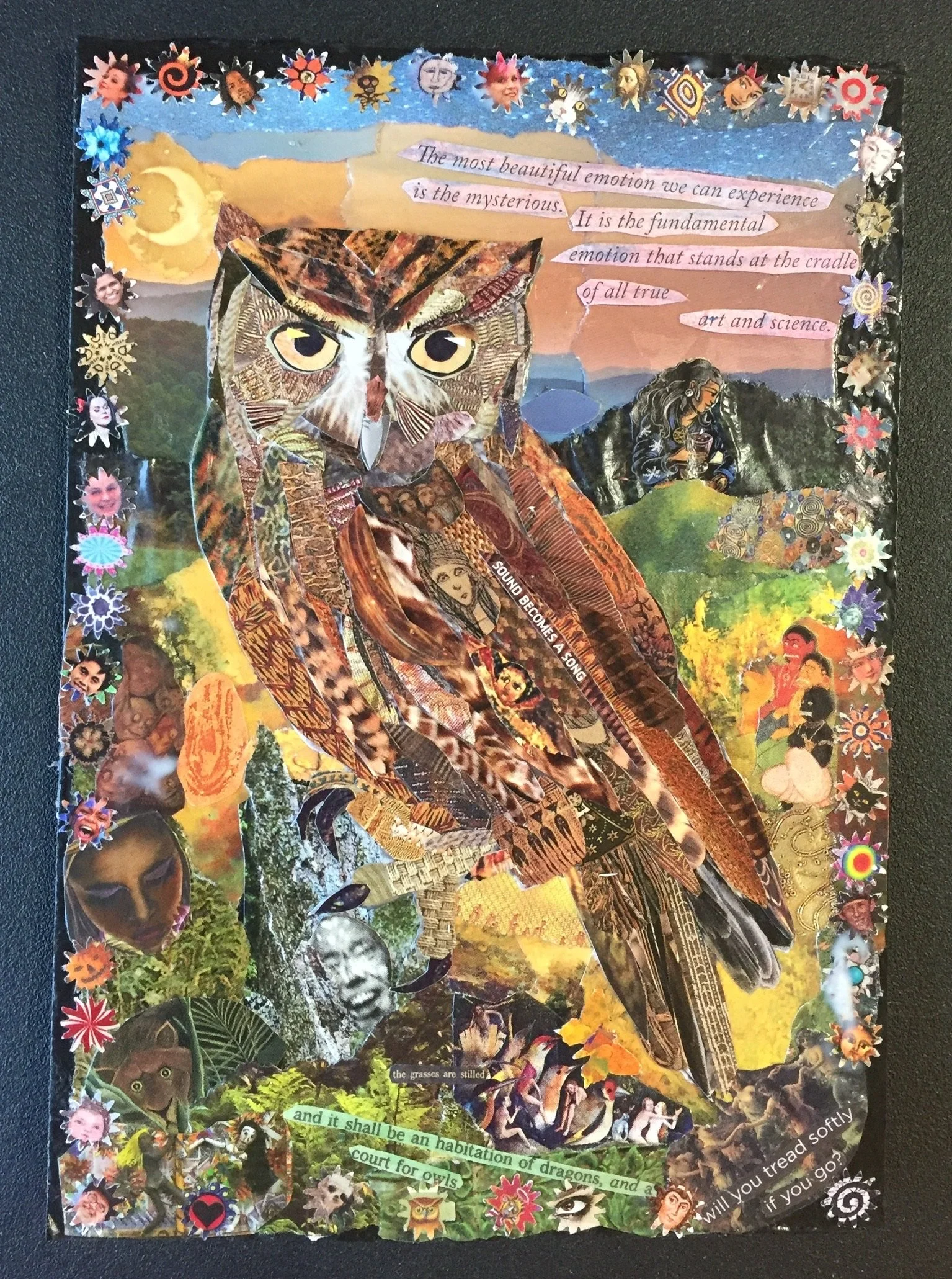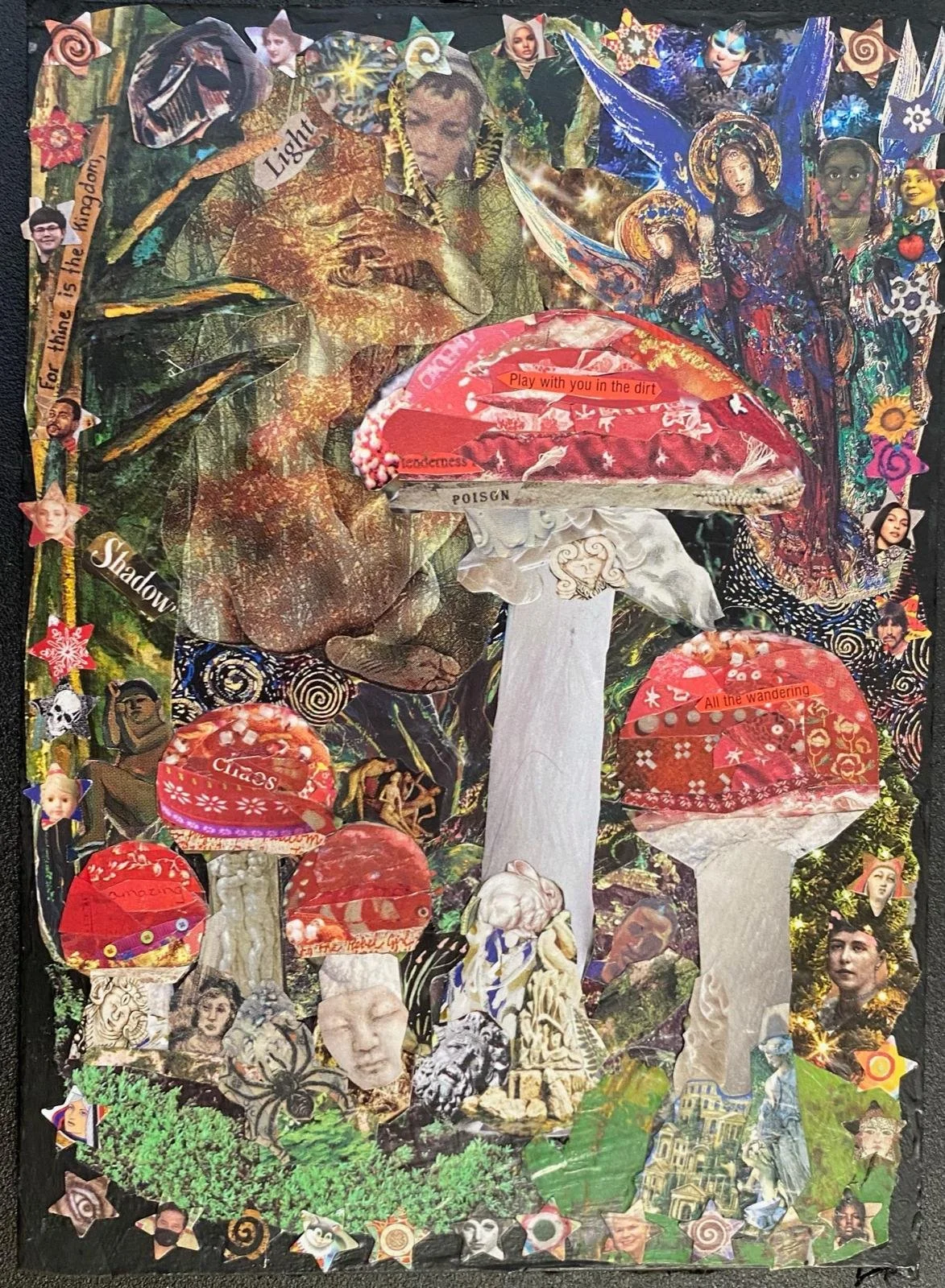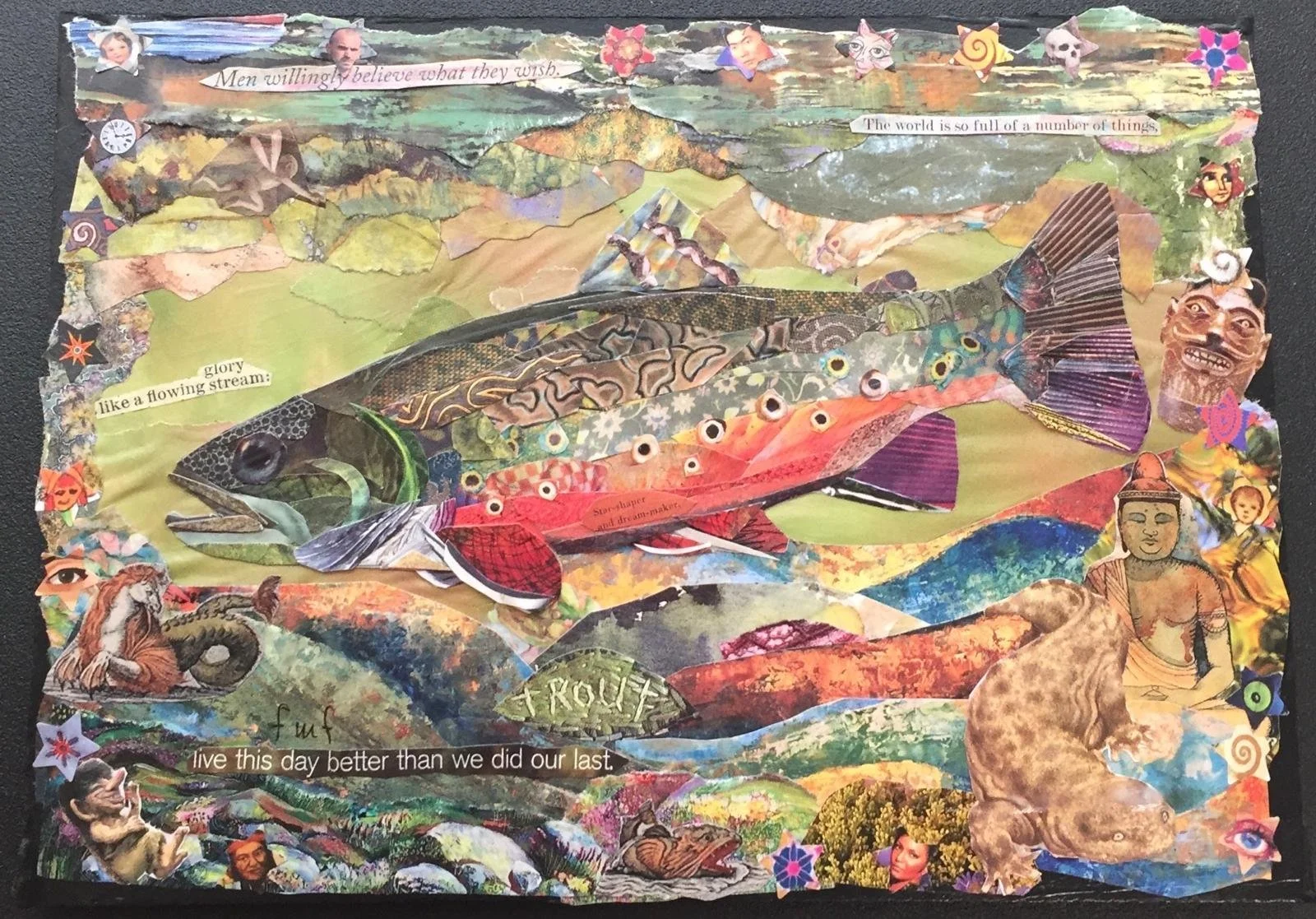 Florrie Funk is a North Carolina based collage artist. Through layers of reclaimed paper, hidden symbols, and poetry written in found words, her pieces invite viewers to look carefully - to discover the quiet narratives nestled in feathers, petals, scales, and shadows.